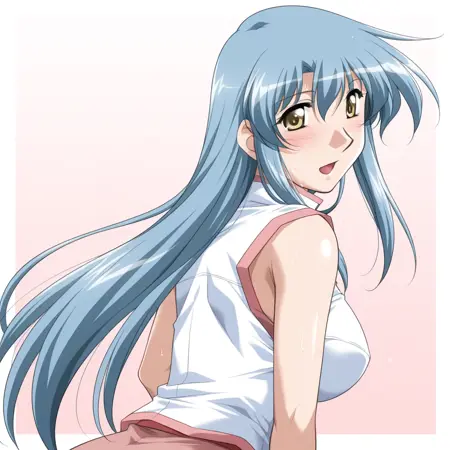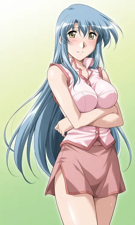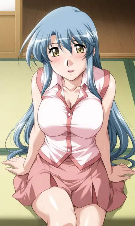Arisa Sagara, blue hair, long hair, yellow eyes,