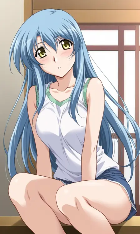 Arisa Sagara, The Sagara Family, blue hair, long hair, yellow eyes,