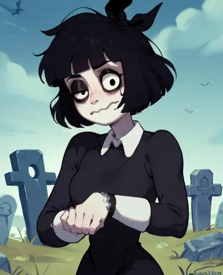 苏西,黑色眼睛,黑色头发,齐刘海,短发, - 微卷的嘴唇,苍白的皮肤,