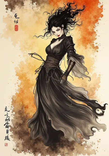 使用具有动态和富有表现力的笔触与墨点的墨水和水彩图像训练的LoRA。