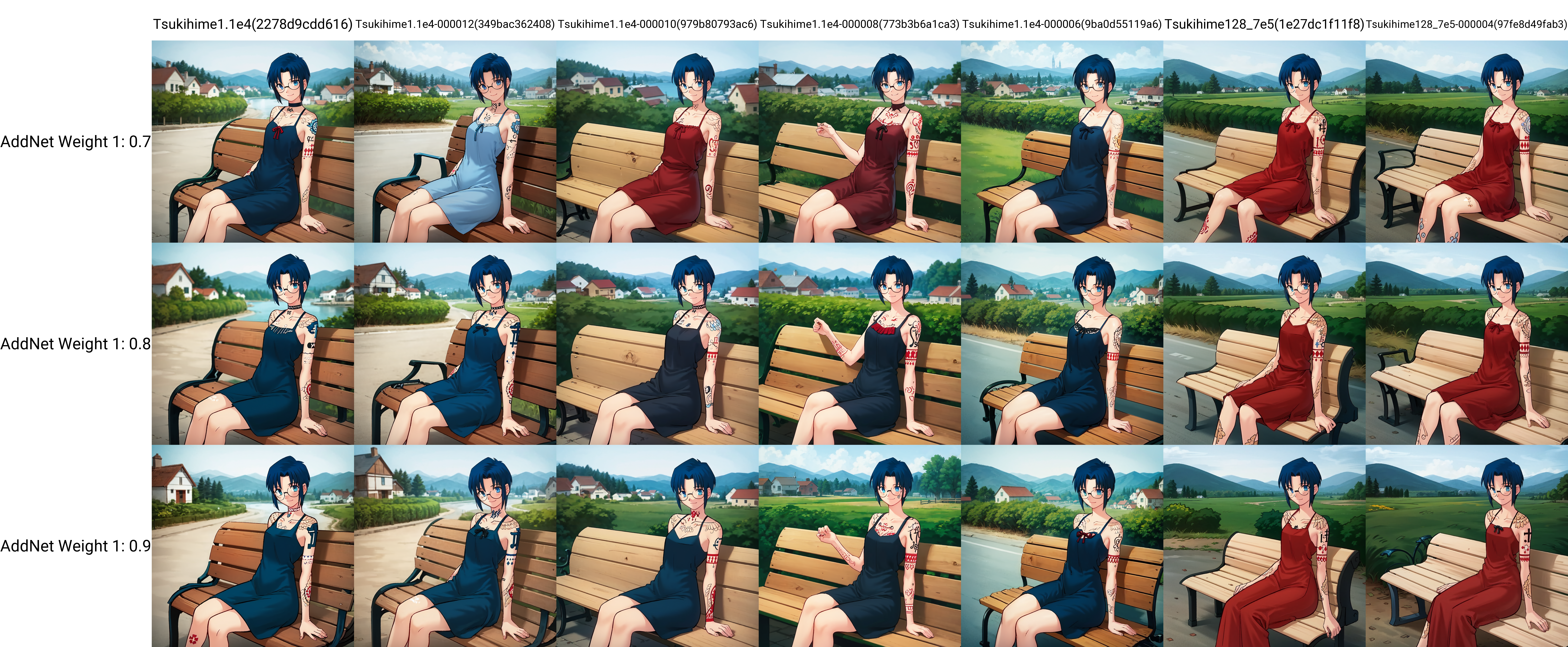 The "Tsukihime128_7e5" versions might be transfering the style better but could be slightly burnt and less responsive, haven't done enough testing to be sure. All my pixiv gens up to upload date used the 7e5 ones, if you're aiming to replicate.