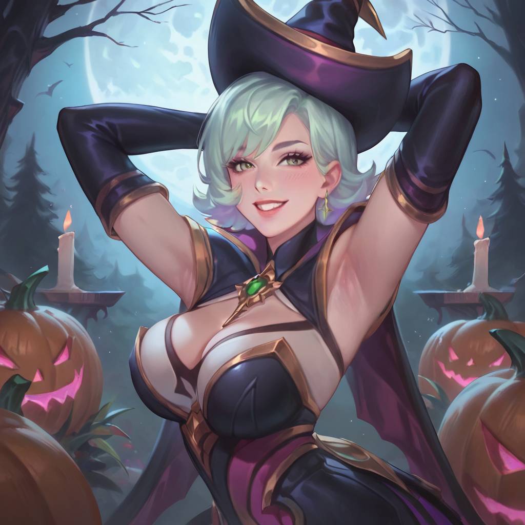 bewitchingelse, gloves, green hair, hat, short hair, boots, dress,