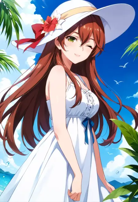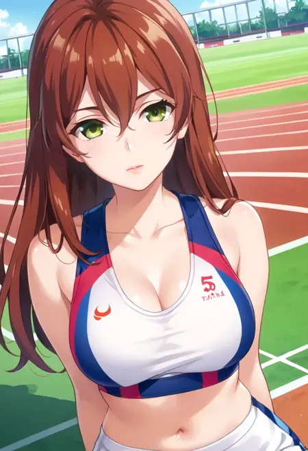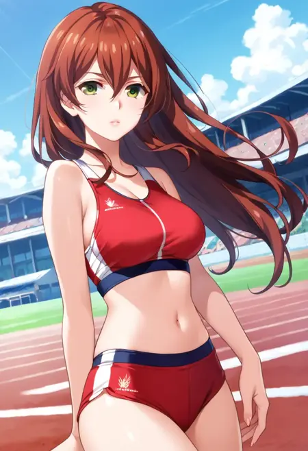 Hiragi Akira, red hair, long hair, brown hair, green eyes, hair between eyes,