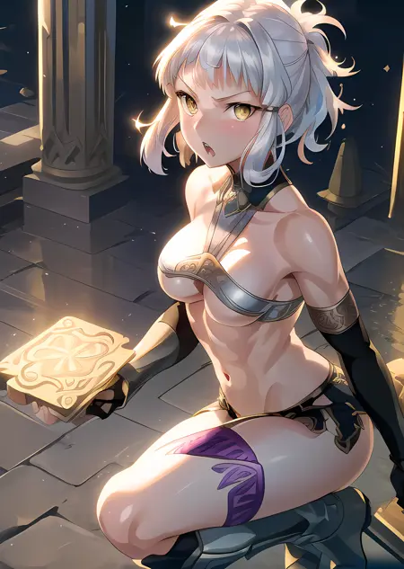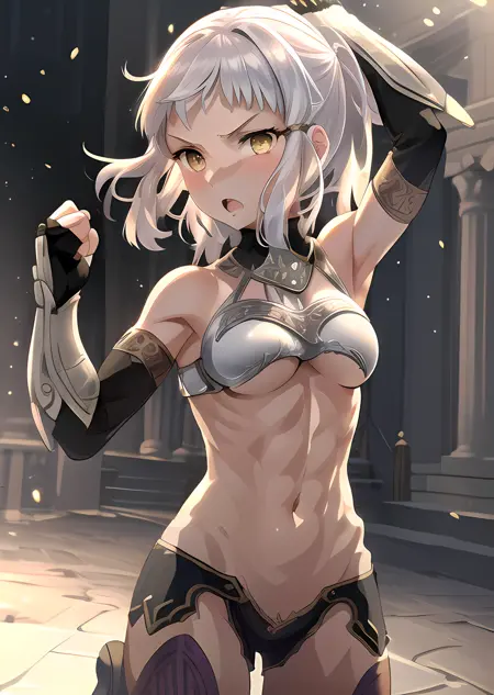 Trigger words: Penthesilea, white bra, black tiny hotpants, short hair (for more look in my samples of her)