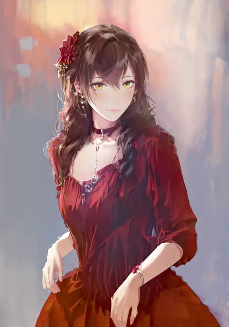 rose \(tot\),1girl,solo,brown hair,yellow eyes,long hair,