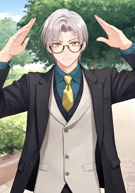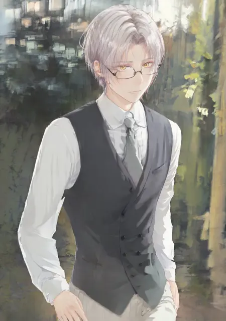 moyi \(tot\),1boy,solo,male focus,yellow eyes,white hair,short hair,glasses,