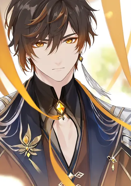 xiayan \(tot\),1boy,brown hair,brown eyes,male focus,solo,short hair,