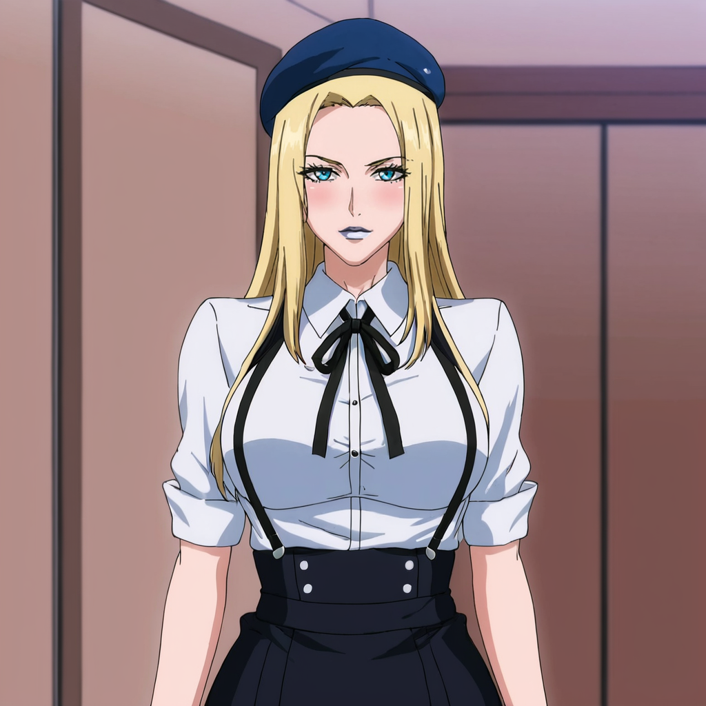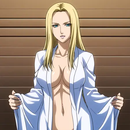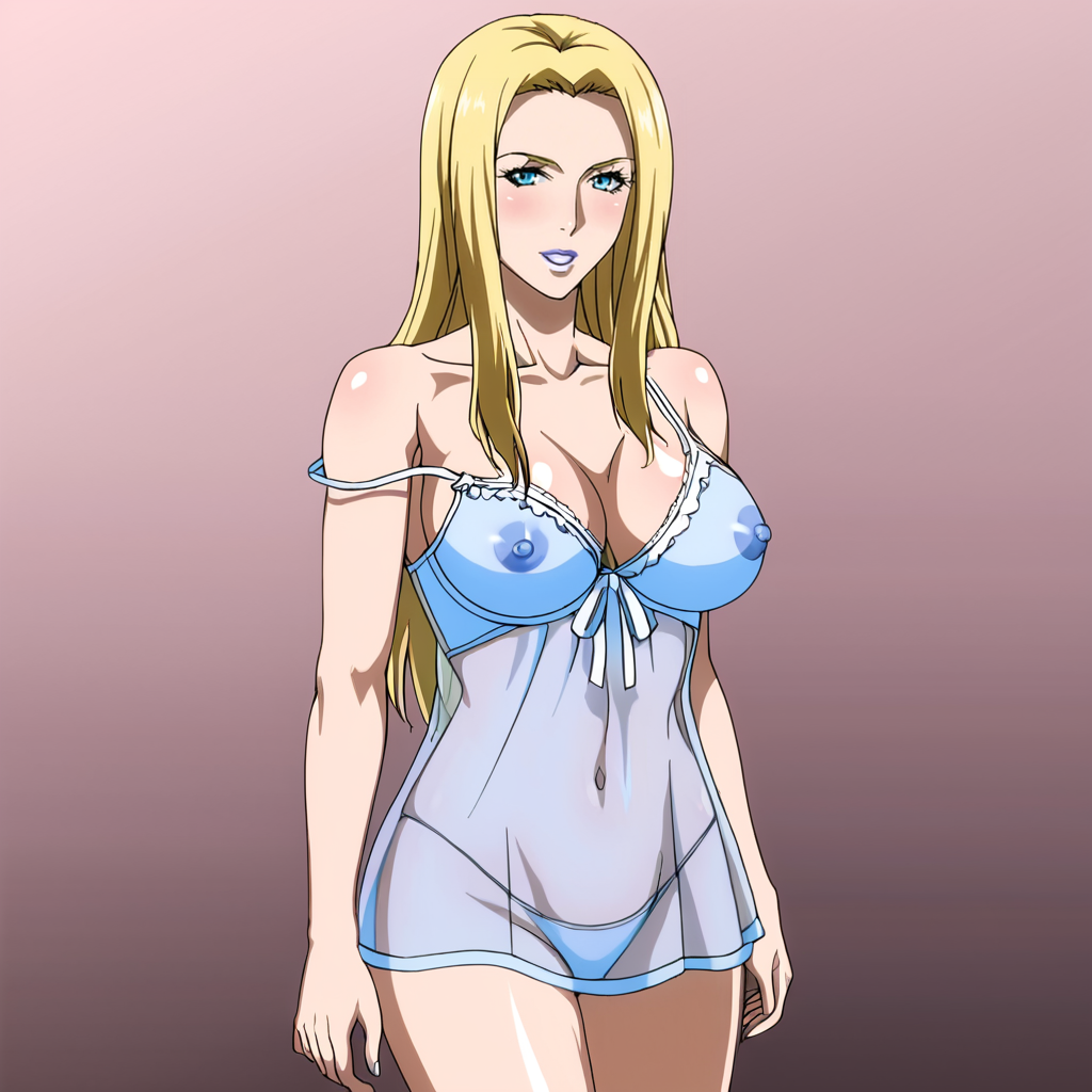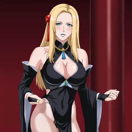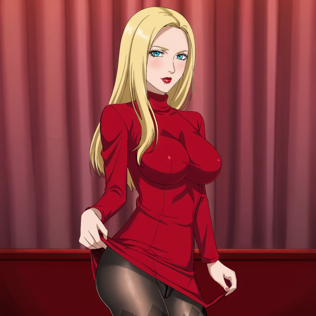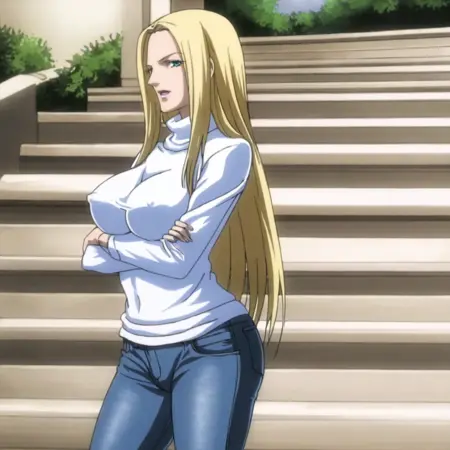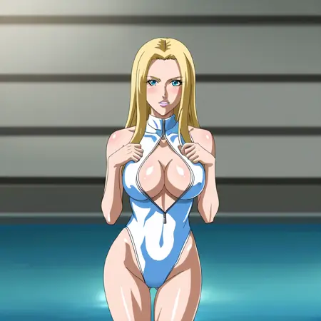 • 트리거: EmmaFrostAnime, 1girl, 금발 머리, 큰 가슴, 브라질리언, 긴 머리, 초커, 망토, 파란 눈, 바디수트, 카우보이 샷