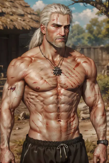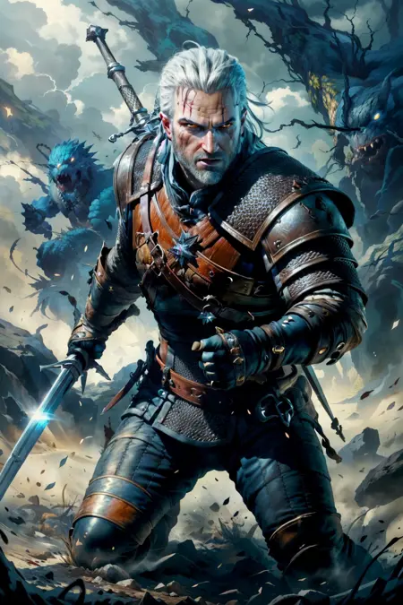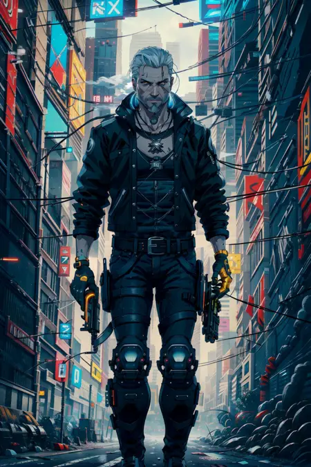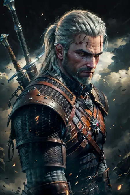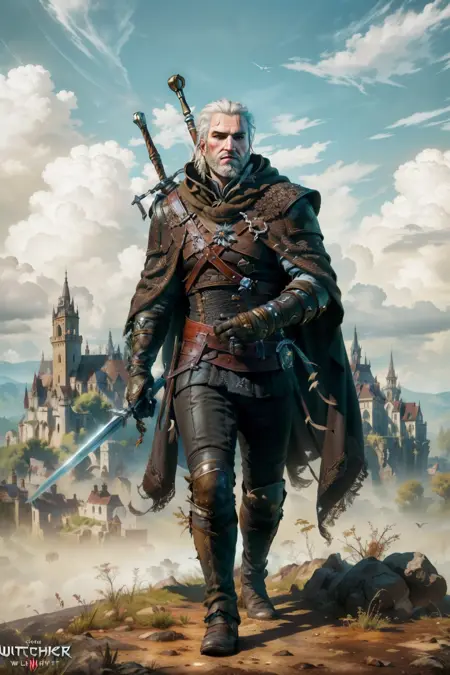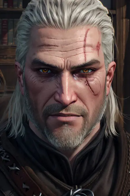 Character Lora of Geralt of Rivia from The Witcher 3 : Wild Hunt .