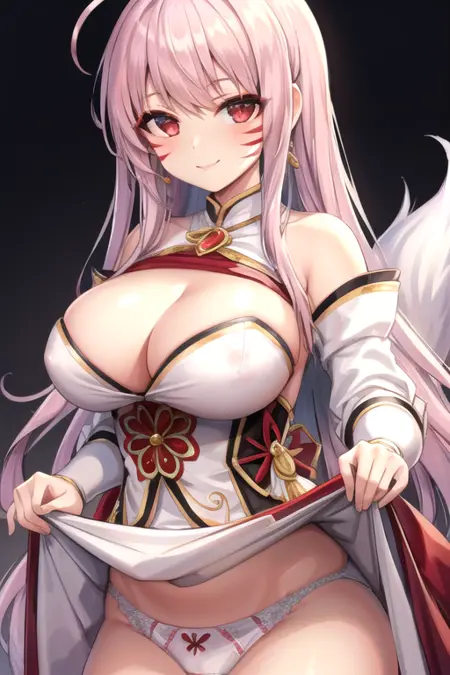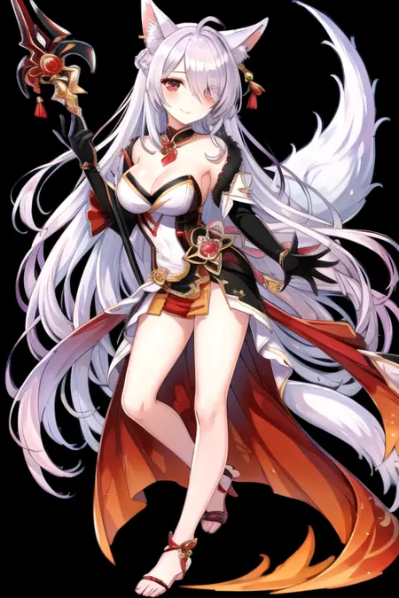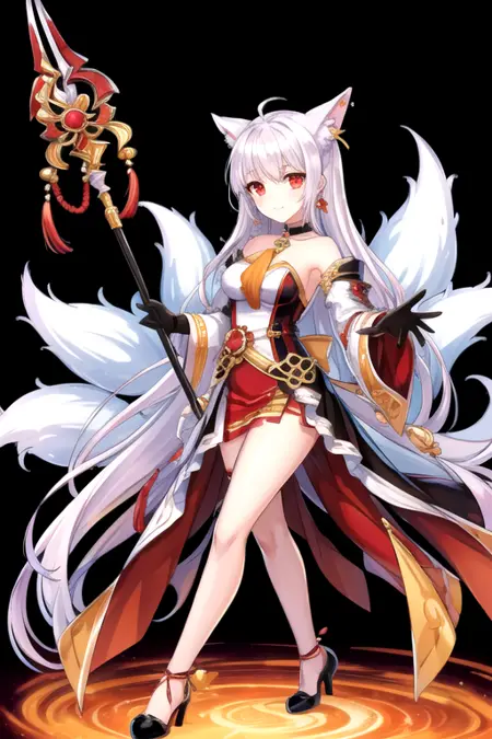 Eun Prompt : white hair, red eyes, fox ears, fox tail