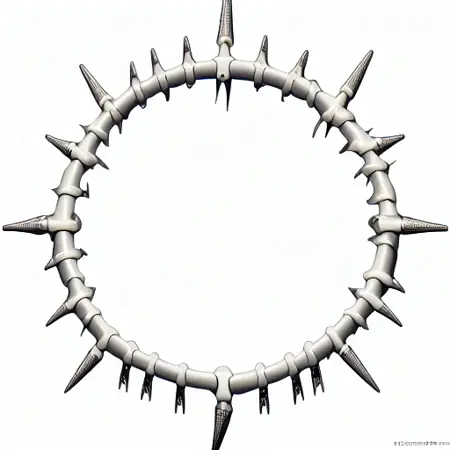 token ring, circular, blue, metal, spikes, gold ornaments, runes, stone, high details, white center, white background, simple background