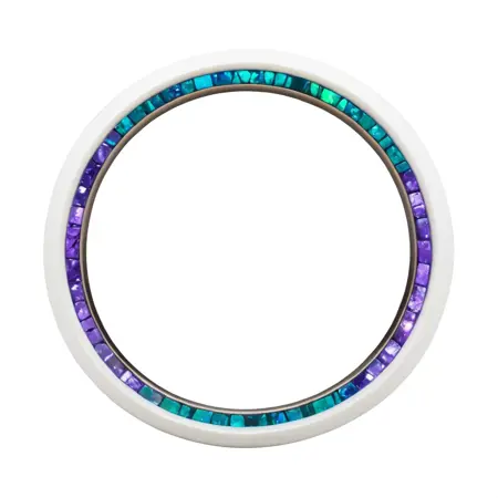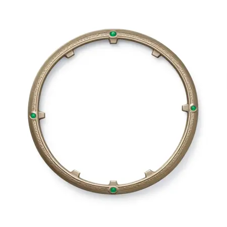 token ring, circular, blue, metal, spikes, gold ornaments, runes, stone, high details, white center, white background, simple background