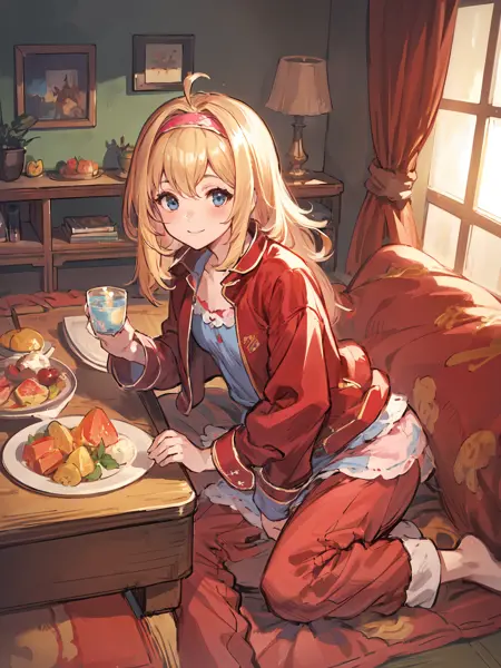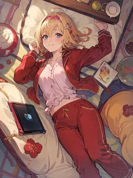 服装8(聖乙女の休息,Jeanne d'Slack):costume8,休闲装,发带,粉红色睡衣,红色夹克,红色裤子