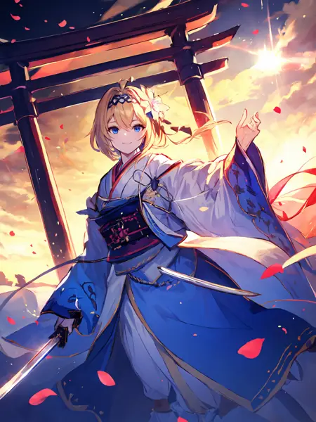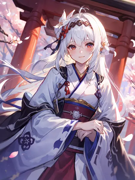 --V2:costume7,振袖(和服),长袖,丝带,辫子,花朵,发带,和服,腰带,花瓣,腰带(建议在负面提示中加入“盔甲”)