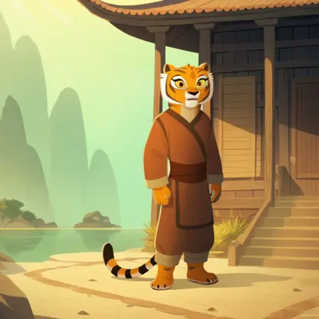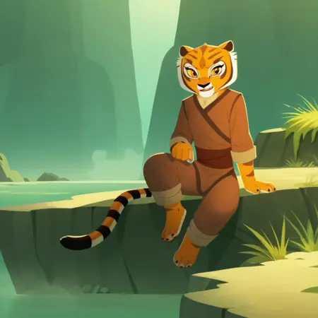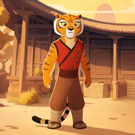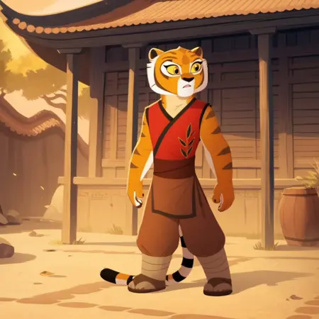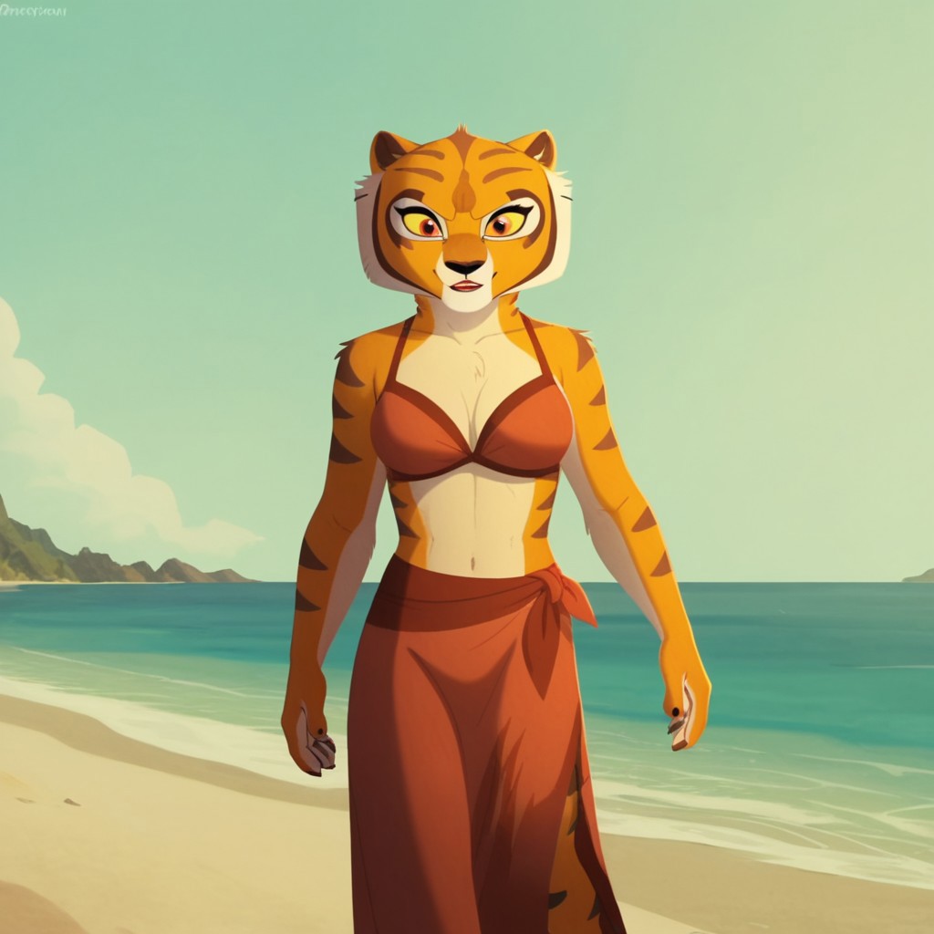 tigresskfpv2, anthro, female, tiger, orange fur, amber eyes, yellow sclera,