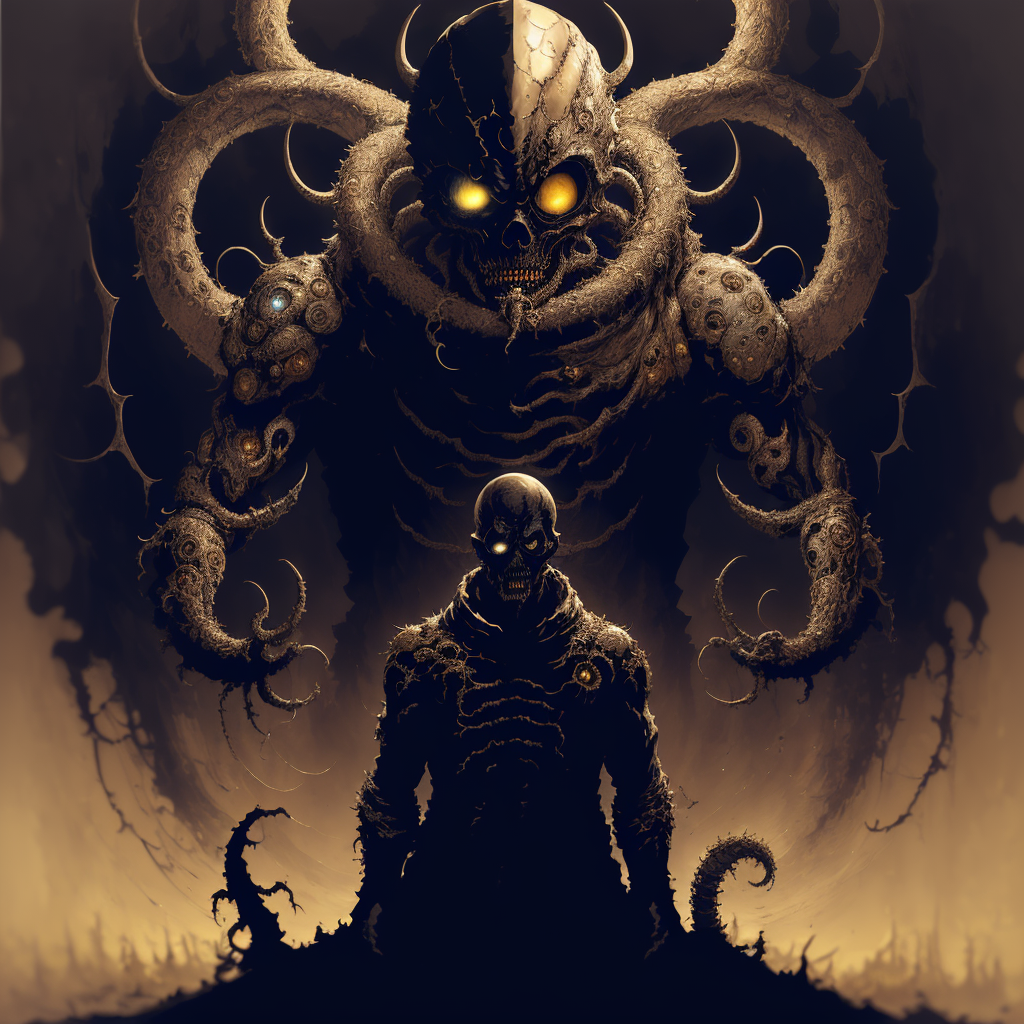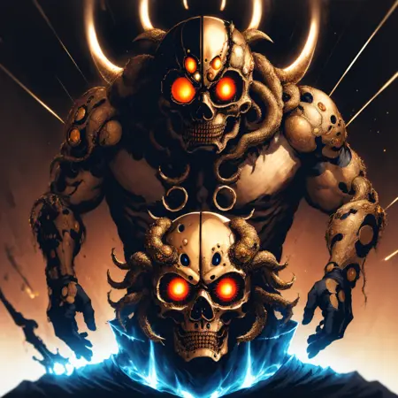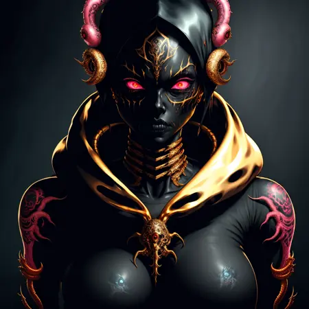 这是我原创的概念/风格,融合了金色、神性与宇宙恐怖的元素——金色的神明。