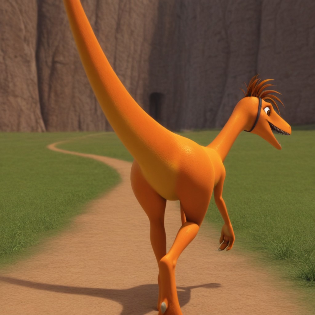 dtmrconductoril, feral, male, furry, troodon, dinosaur, orange skin, brown eyes,