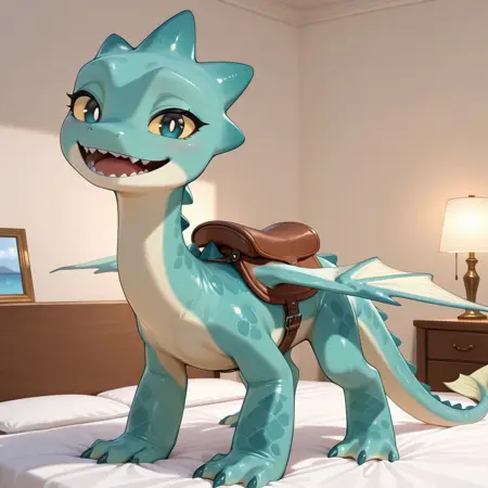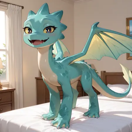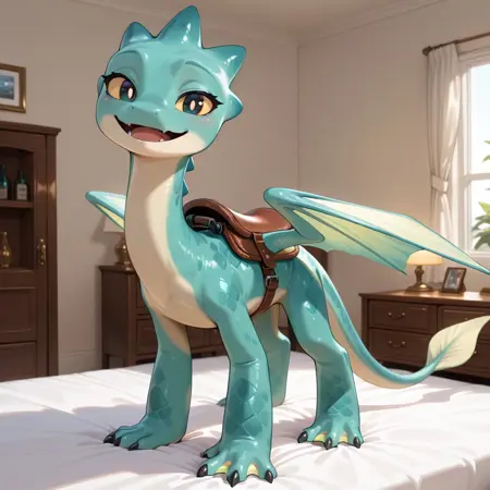 추가 프롬프트: dragon, teal scales, claws, wings, tail, webbed feet, yellow sclera, black pupils, 1girl