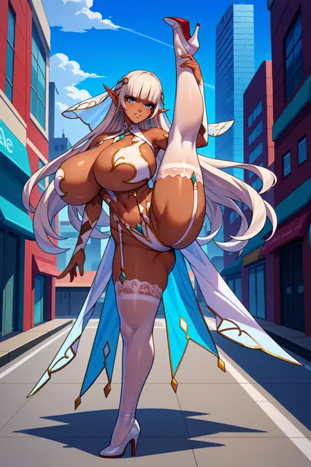 트리거 단어는 "eleonor"이며, "검은 피부를 가진 여자, 흰 머리카락, 매우 긴 머리카락, 둔한 앞머리, 날카로운 귀, 파란 눈"이 필수입니다.