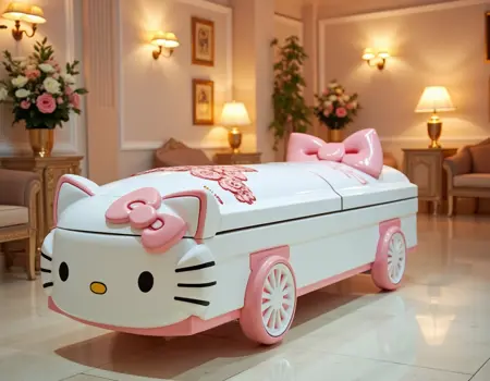 Prompting: "Highly detailed photo of a custom casket (or coffin) shaped like..." Seems to work for the most part.