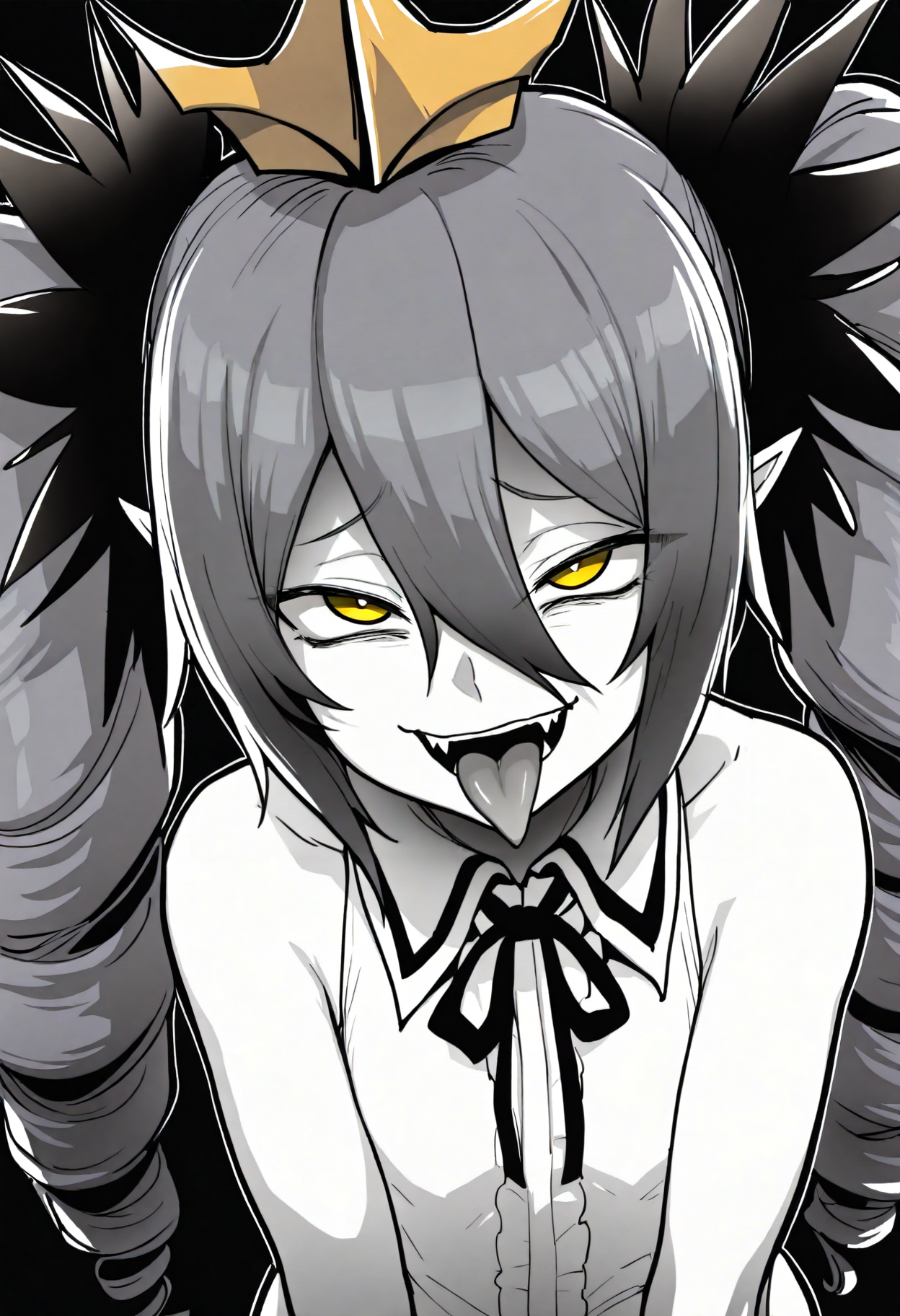 その他のプロンプト:tongue out, fangs, demon tail, pubic tattoo