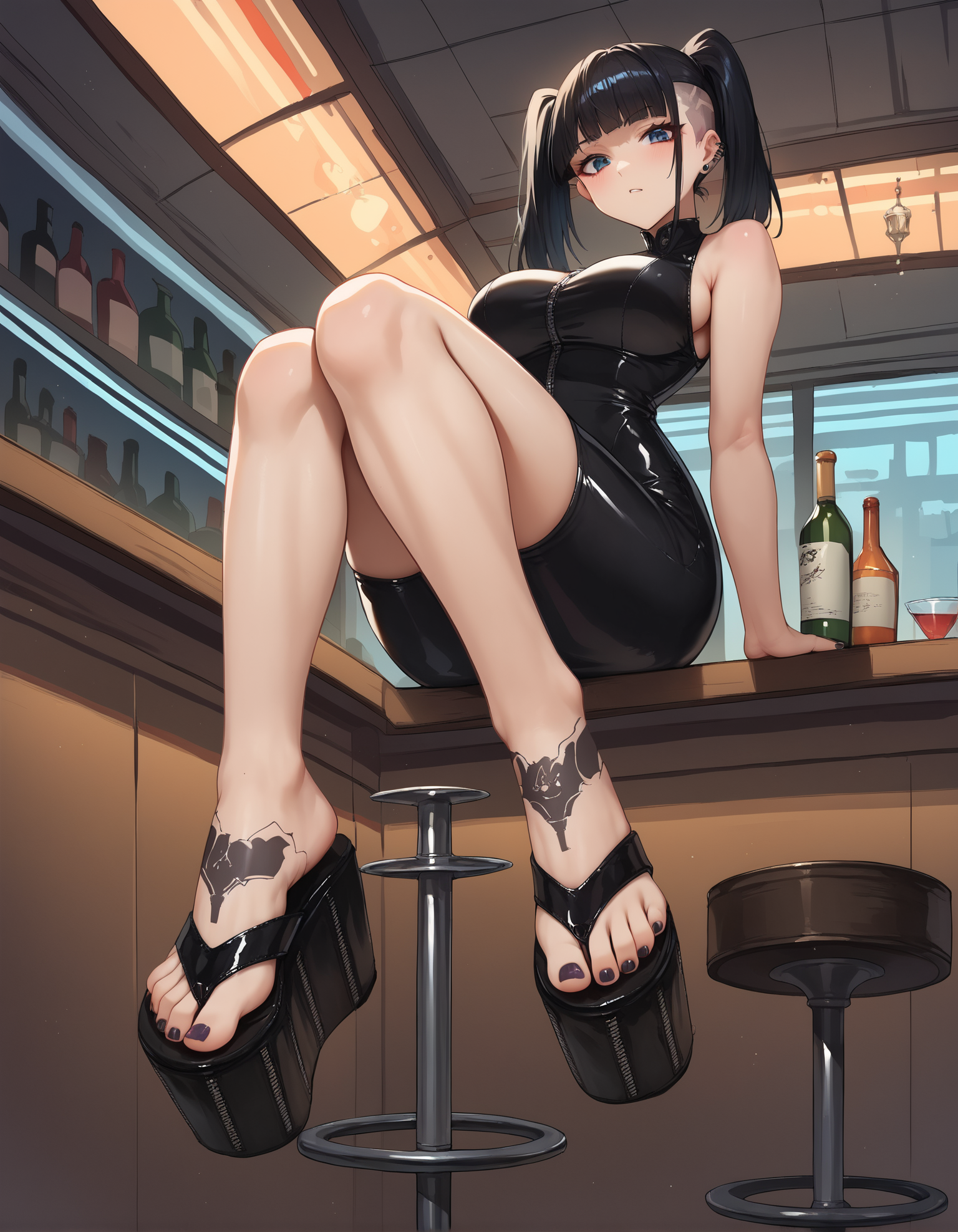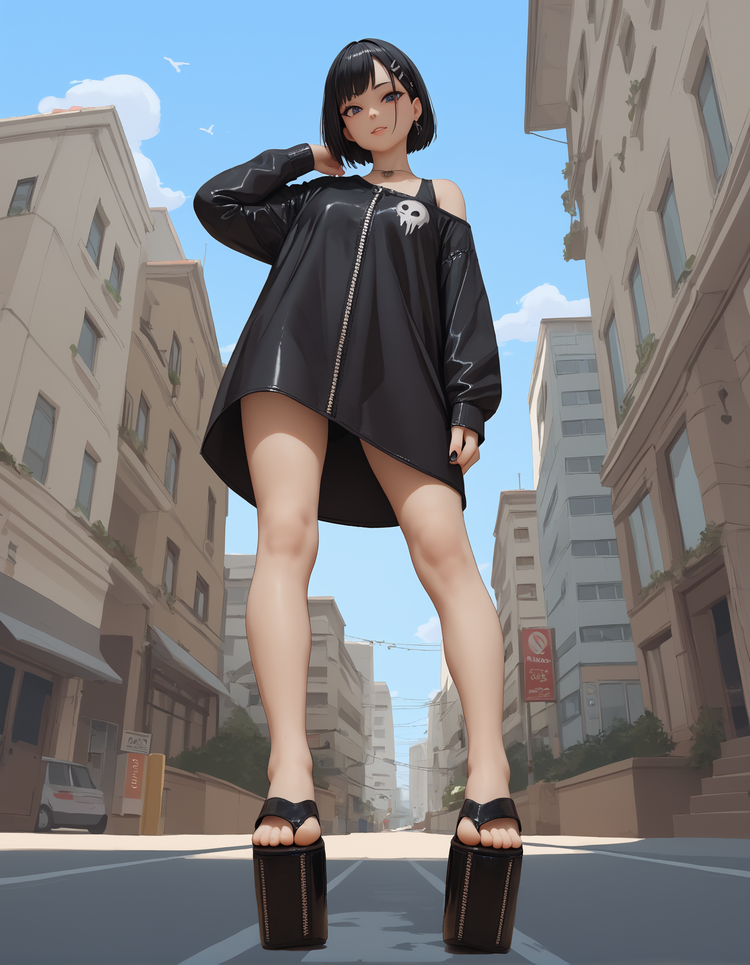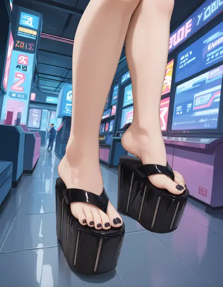 Darker Wavs(Dollskill)의 지퍼 액센트가 있는 라텍스/페티너 가죽 플립플롭