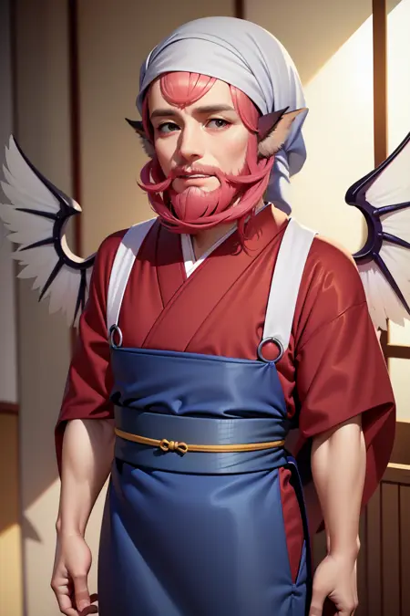 이 옷차림은 요리나 청소와 같은 일상적인 작업에 특히 효과적이며, 부사장 또는 집주인의 대표적인 복장으로 나타납니다.