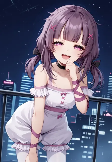 + Shondo2ndC,x 发饰,双马尾,长发,粉色眼睛,棕色头发,发带,发夹,紫色头发,中长发,紫色眼睛,低双马尾,齐刘海,锁骨,粉色丝带,