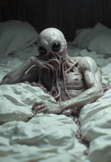 「不気味」は、創造物におけるホラーのテーマを強調するために丁寧に選別されたデータセットを用いており、Base Flux Devが苦手とするような不気味なムードを生み出すことができます。このLoRAは、恐ろしい暗い雰囲気、怪物のようなキャラクター、不快な質感を生み出すことが可能です。