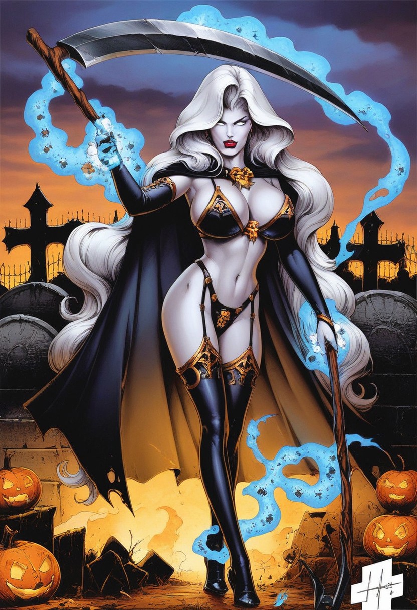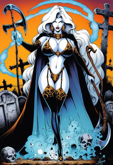 (已经有一些出色的死亡女士LORA了,但我想要一个能真正还原原始漫画封面感觉的。希望你喜欢!)