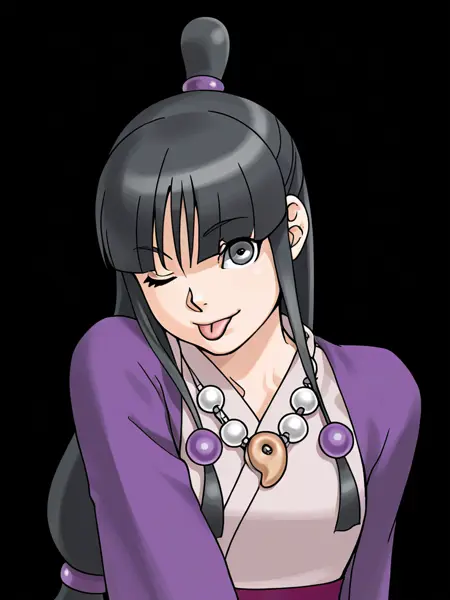 키워드: 마야 페이, 검은 머리카락, 곧은 앞머리, 긴 머리카락, 반올림 헤어스타일, 탑노트, 낮게 묶은 긴 머리카락, 검은 눈