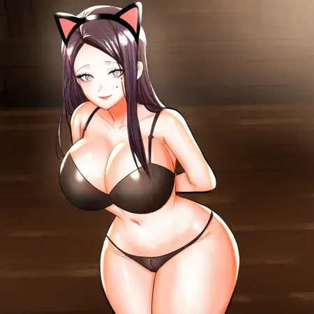 24. ((섹시한 고양이 눈 모양 블랙 브라, 노골적인 가슴선, 거대한 가슴선, 섹시한 블랙 팬티, )) + 검은 앨리스 밴드에 검은 가짜 고양이 귀,