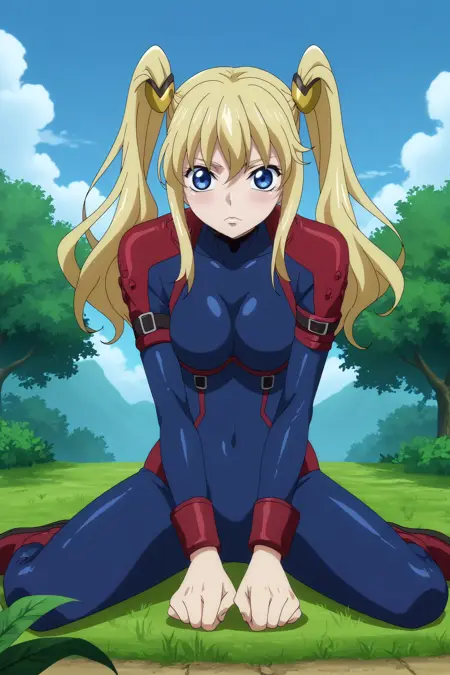 트리거: leila malcal,1girl,solo,long hair,twintails,looking at viewer, bodysuit