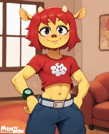 - Ponyxl ——该 LoRA 是在网站上训练的,替代版本——训练强度更强——因为她是以兽人风格训练的,因此使用兽人提示词可能比预期更强——使用卡通/2D 风格可更易实现默认外观——我并不擅长兽人风格,有人建议添加 source_cartoon,