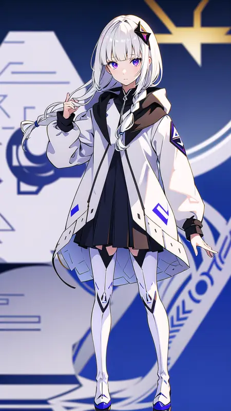 -->提示词:kafucevio, virtual youtuber, hood, hair ornament, bangs, slim braid, blunt bangs, hooded jacket,