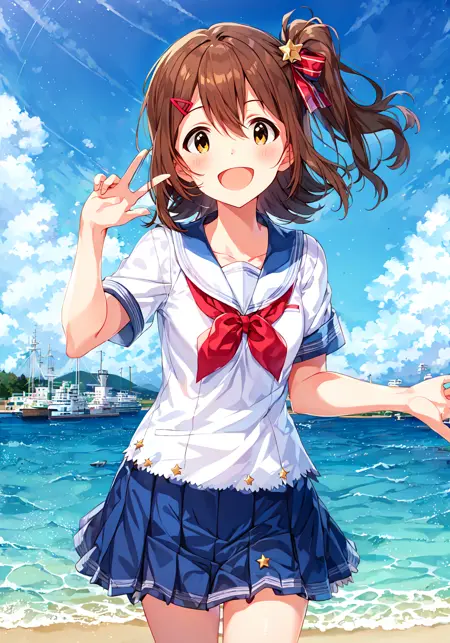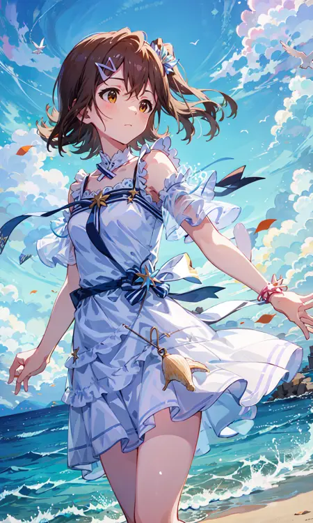 示例图的LoRA权重为0.85,您也可以尝试其他权重值。权重越大,角色风格越接近游戏《偶像大师 百万现场 剧场时光》(MLTD)游戏卡面以及该游戏发行后新绘制的立绘