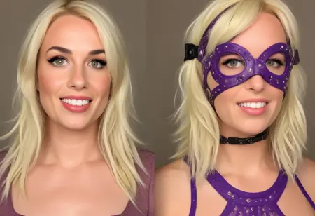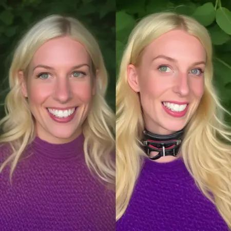 이 모델은 한쪽에는 여성이 정장 차림으로 공개적으로 적합한 상태를, 다른 쪽에는 란제리 및/또는 피티쉬 복장으로 묘사된 분할 이미지를 생성하도록 의도되었습니다.