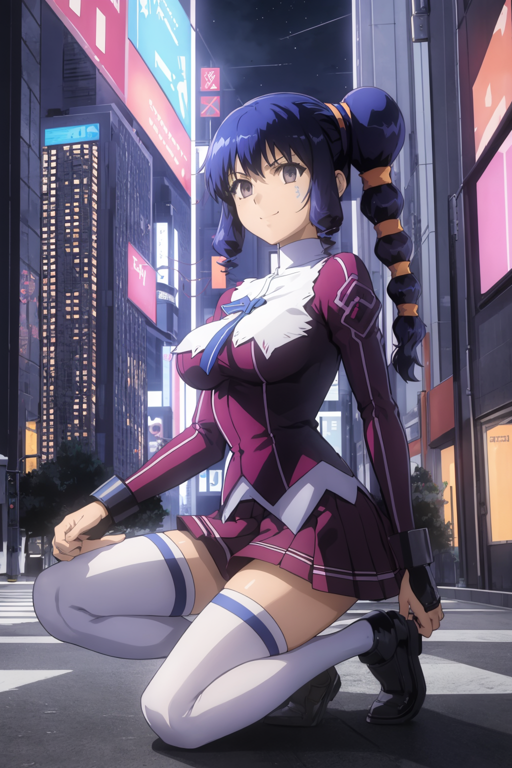 他のプロンプト: 灰色の目、青髪、長髪、編み込み、サイドポニーテール、女子校制服、スカート、下着、絶対領域、タトゥー、パンティ、大きな胸