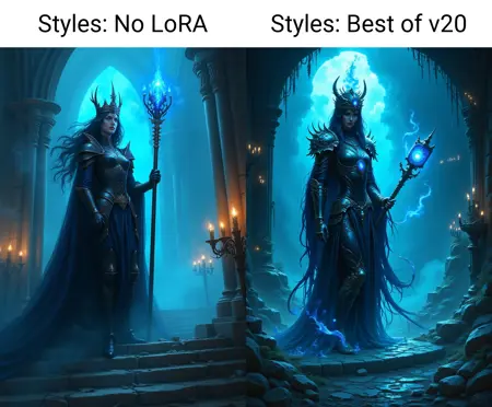 200스탭 더 훈련된 버전 2.2는 더욱 뚜렷한 전환 효과를 낼 수 있지만, 미세한 향상을 원하시면 낮은 LoRA 강도를 사용해야 합니다. 최대 강도로 사용할 경우, 이 LoRA는 프롬프트를 쉽게 재해석하여 종종 매우 다른(그러나 대부분 매우 인상적인) 이미지를 생성합니다. 사용이 재미있고, 그렇지 않으면 불가능했던 매우 아름다운 결과물을 얻을 수 있습니다. 트리거 단어는 여전히 "best_of"입니다.