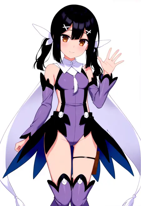 魔法少女提示词:twintails, long hair, cape, detached sleeves, hair ornament, magical girl, purple leotard, thighhighs, boots