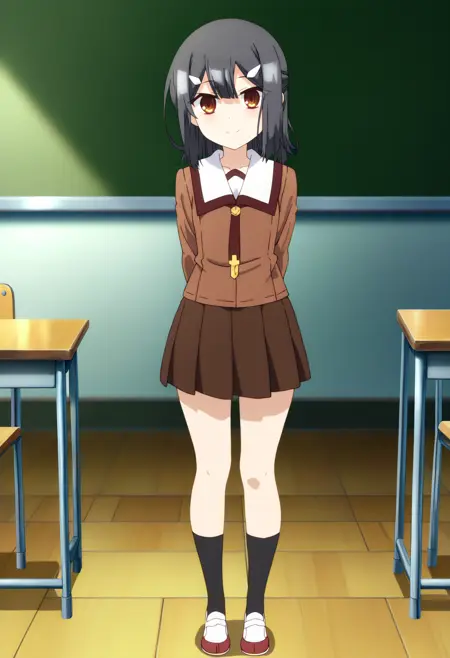 基础提示词:1girl, miyu edelfelt, black hair, brown eyes, hairclip, bangs