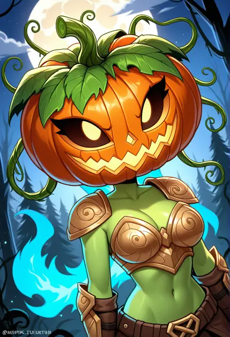 Celebrate the spookiest month of the year with PumpkinCreature! This LoRA is designed to create humanoid pumpkin creatures, with details like jack-o'-lantern heads, roots, thorns, and tentacles. Its appearance is a mix of plant monster and Halloween essence, perfect for creating spooky, eerie, and festive characters. Ideal for your most haunting creations this season.