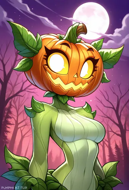 英語: Trained on images of humanoid pumpkin creatures, mixing plant monsters with Halloween elements.