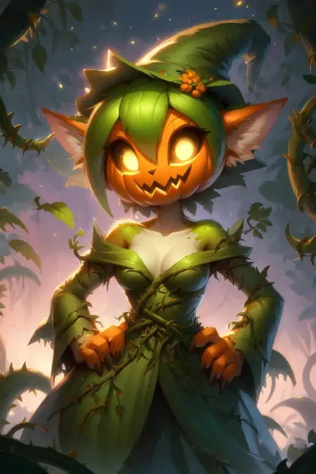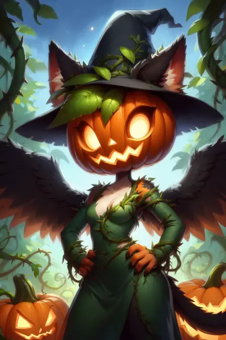 Celebrate the spookiest month of the year with PumpkinCreature! This LoRA is designed to create humanoid pumpkin creatures, with details like jack-o'-lantern heads, roots, thorns, and tentacles. Its appearance is a mix of plant monster and Halloween essence, perfect for creating spooky, eerie, and festive characters. Ideal for your most haunting creations this season.
