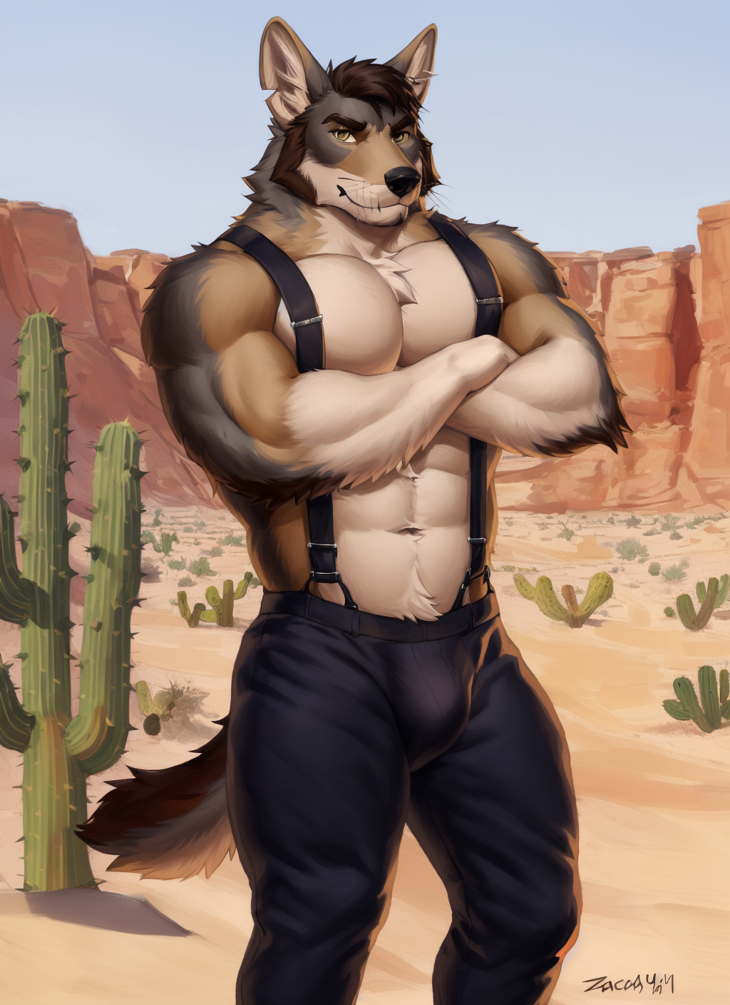 추천 프롬프트: "노란 눈, 근육질" (긍정적) "목걸이 아래로 처지게" (부정적)