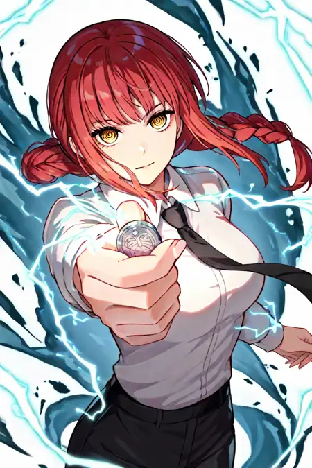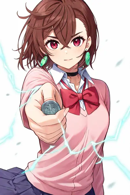 prompt 1 : coin, holding coin, facing viewer, looking at the viewer, electricity, electrokinesis