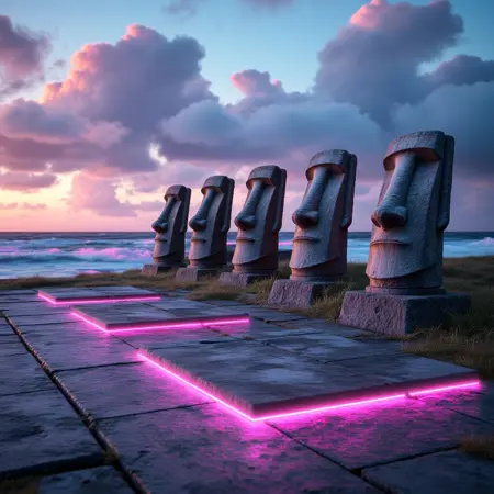고대 기념비가 네온에 젖은 향수와 만나는 대체 차원으로 들어서세요. Vaporwave Retro-Futuristic Monuments LoRA를 통해 고전 역사의 거대한 구조물이 파스텔 그라데이션, 글리치 효과, 그리드로 된 하늘로 뒤덮인 모습을 상상해보세요. 이 LoRA는 상징적인 건축물의 영원한 위엄을 80년대 스타일의 레트로 퓨쳐리스틱 미학과 결합하여, 과거를 신스웨이브 미래와 융합한 초현실적이고 꿈 같은 풍경을 만들어내기에 완벽합니다.