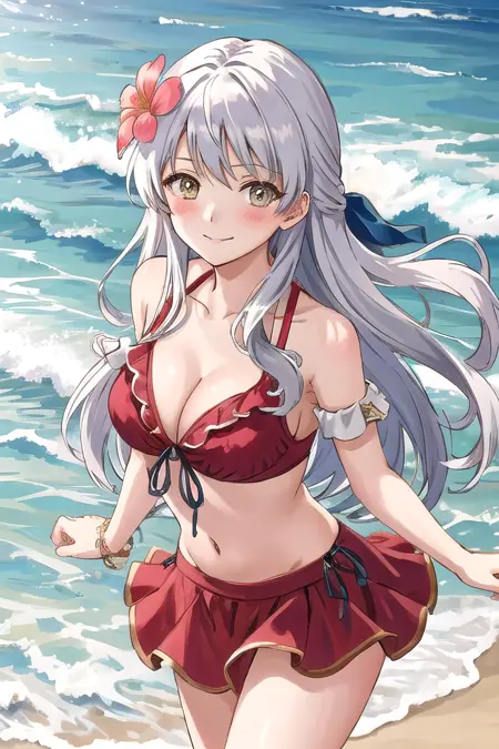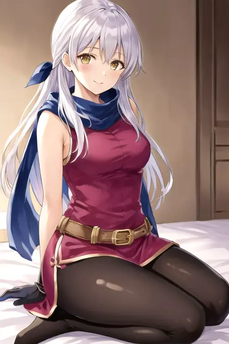 重量0.8前後が効果的です。トリガー語は「micaiah fe」です。「ドレス」、「肩出し」、「リボン」、「パンツヘッド」、「手袋」、「ベルト」、「青いスカーフ」、「スリーブレス」をプロンプトに追加すると、彼女の基本的な衣装の生成に役立ちます。