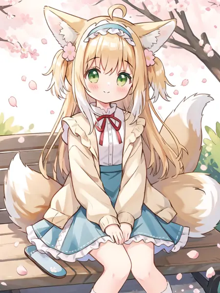 1girl, suzuran (arknights), solo, fox girl, ears down, fox tail, fox ears, animal ears