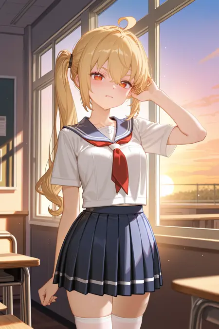 The model was well trained that the default costume can be removed/changed easily even with high lora weight, recommended weight is 0.8~1